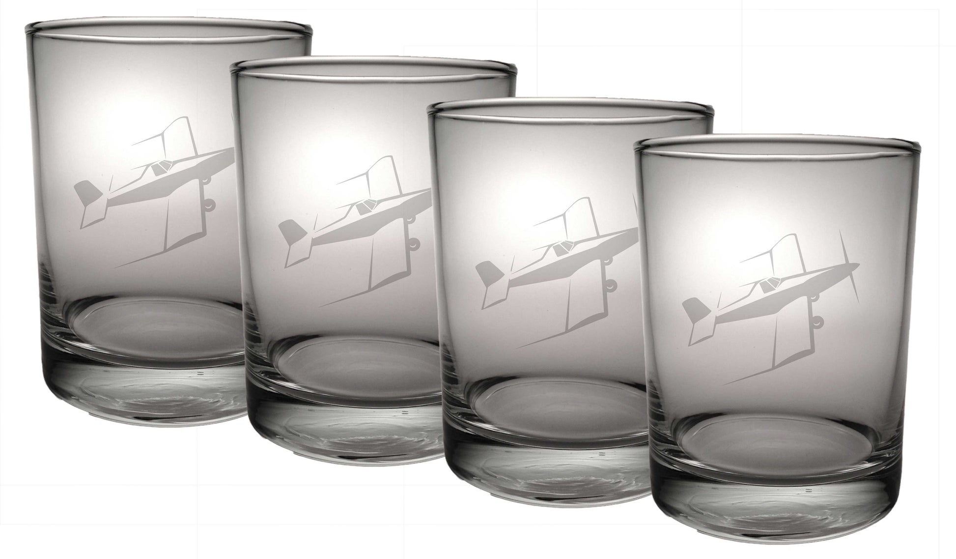 Um conjunto de 4 copos ROTH de alta qualidade gravados com um avião agrícola de turbina.
